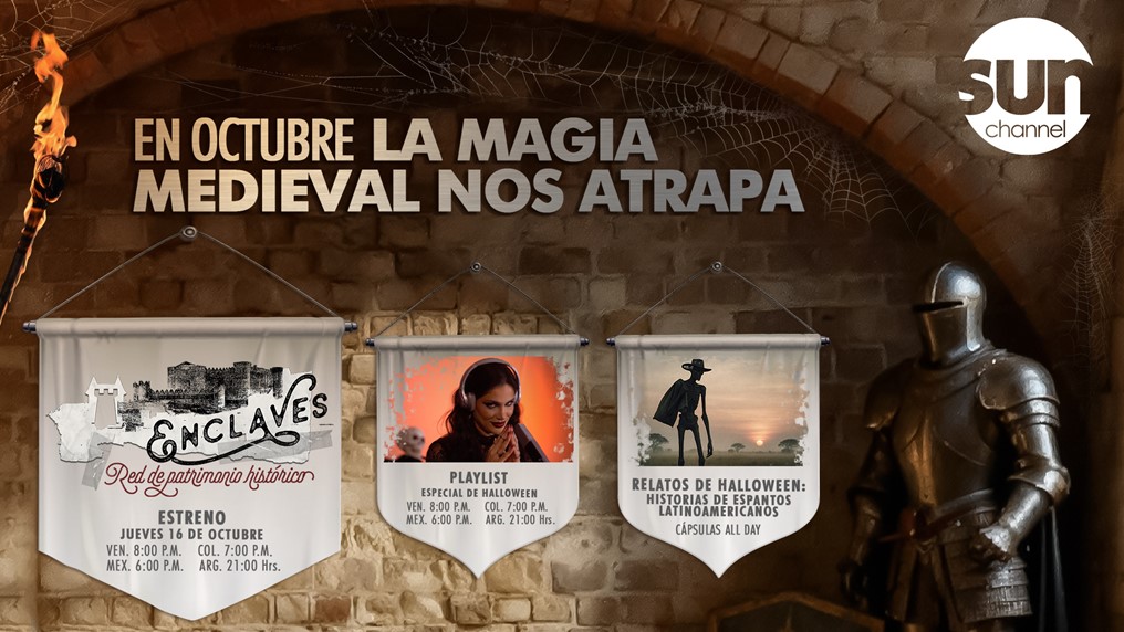 Este octubre, la magia medieval nos atrapa en la pantalla de Sun Channel con un mes de programación que nos transportará a épocas de reyes, fortalezas y leyendas. El protagonista de este mes, es el programa “Enclaves: Red de Patrimonio Histórico”, una nueva serie que despliega un recorrido por los castillos y murallas históricas de España. Prepárate para explorar la arquitectura, las intrigas de la corte y la historia que esconde los misterios de la Europa ancestral. ¡Te invitamos a ser parte de esta aventura épica!